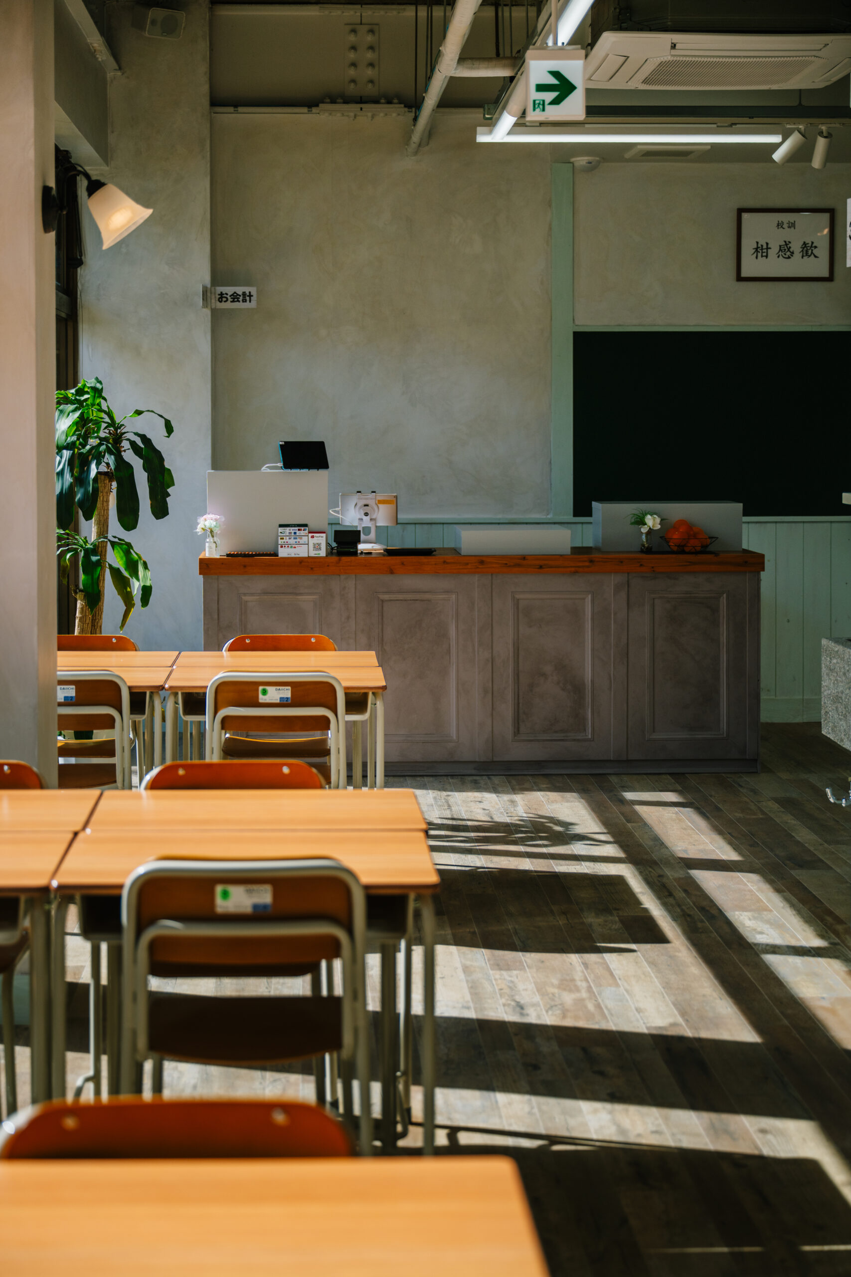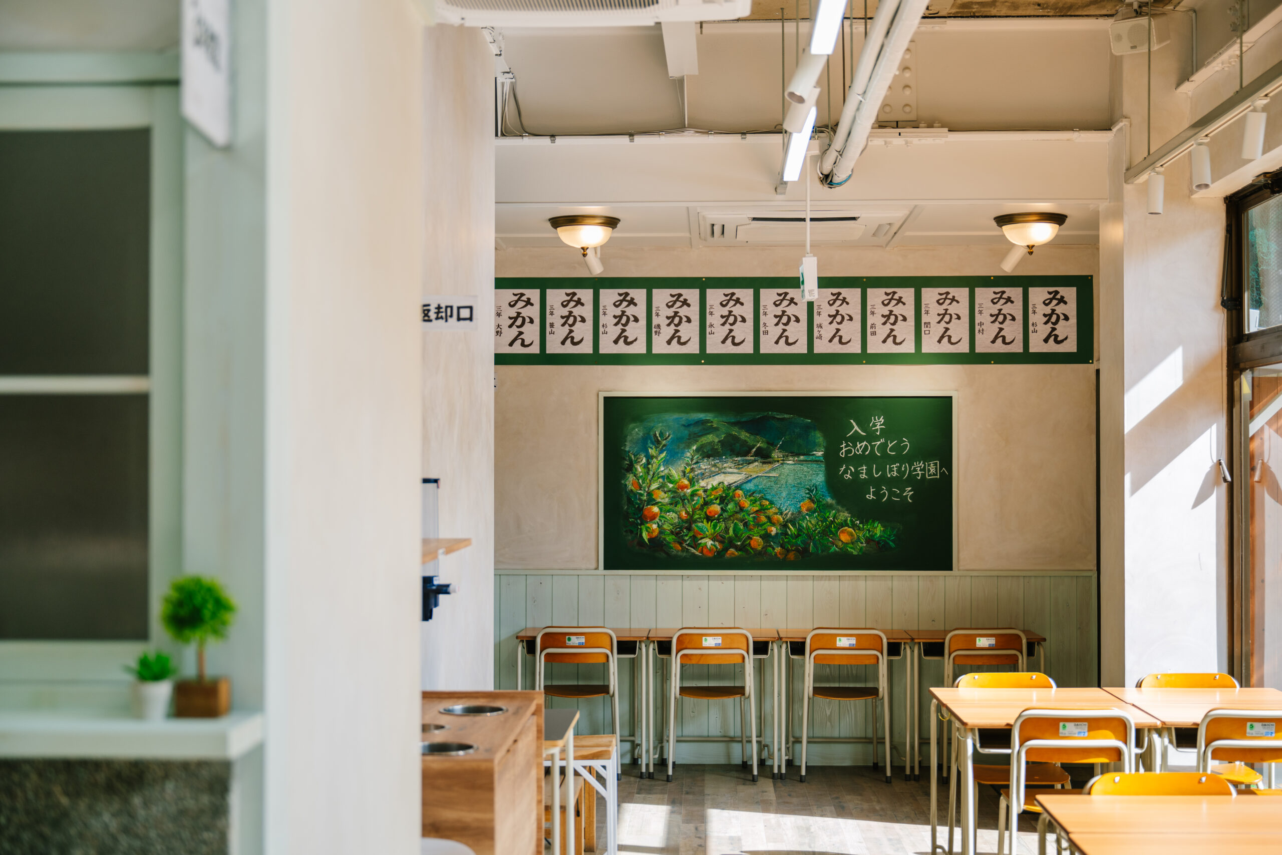 蛇口からみかんジュース!1970年代の学校を再現した店内で楽しむ20種のみかんジュース