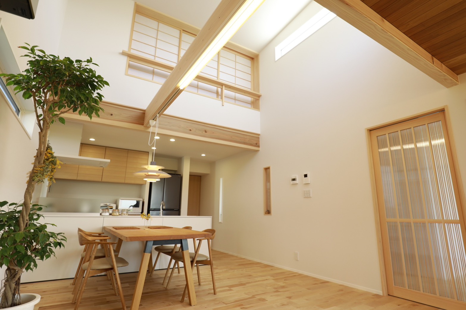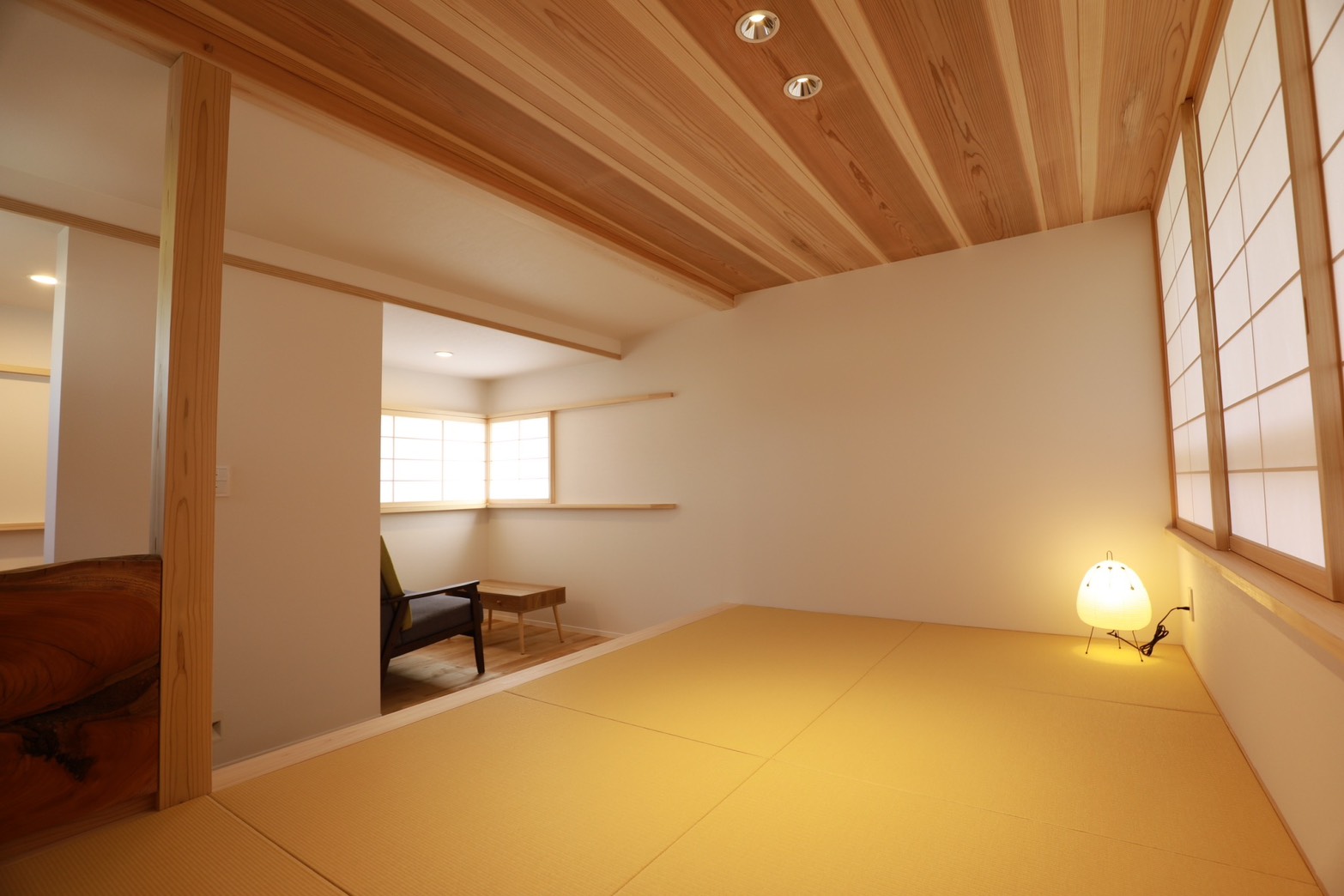 無垢材の質感とやわらかな光に包まれながら、